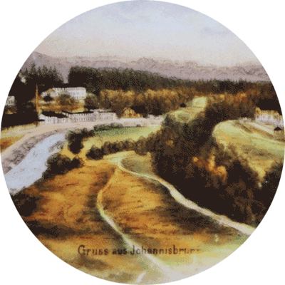 Andenkenteller mit Ansicht von Johannisbrunn (Detail), ca. 1900