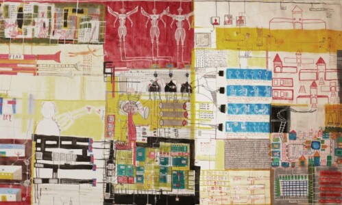 „Damals fassten 14 europäische Staaten gemeinsam einen Beschluss, Afrika untereinander aufzuteilen, ohne sich um das, was die Afrikaner selbst wollten, zu kümmern, oder sie hinzuzuziehen. Und aus diesem Grunde habe ich diese Menschen als kopflose, als hirnlose Menschen dargestellt. Ich habe auch eine Art witzige Anspielung auf die Französische Revolution eingebaut, wo ja auch die Aristokraten damals mit der Guillotine geköpft worden sind". (Gespräch mit H. Hettinger, 2010).